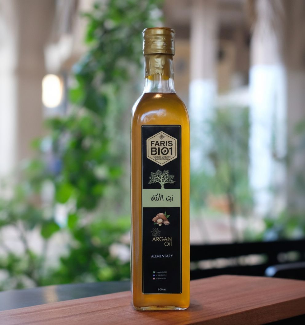 زيت الأركان الغذائي FARIS BIO1 هو زيت طبيعي 100% مستخلص بعناية من حبات الأركان المغربية الأصيلة. يتميز بطعمه الغني وقيمته الغذائية العالية، ويُعد خيارًا مثاليًا للاستخدام اليومي في المطبخ الصحي والراقي.